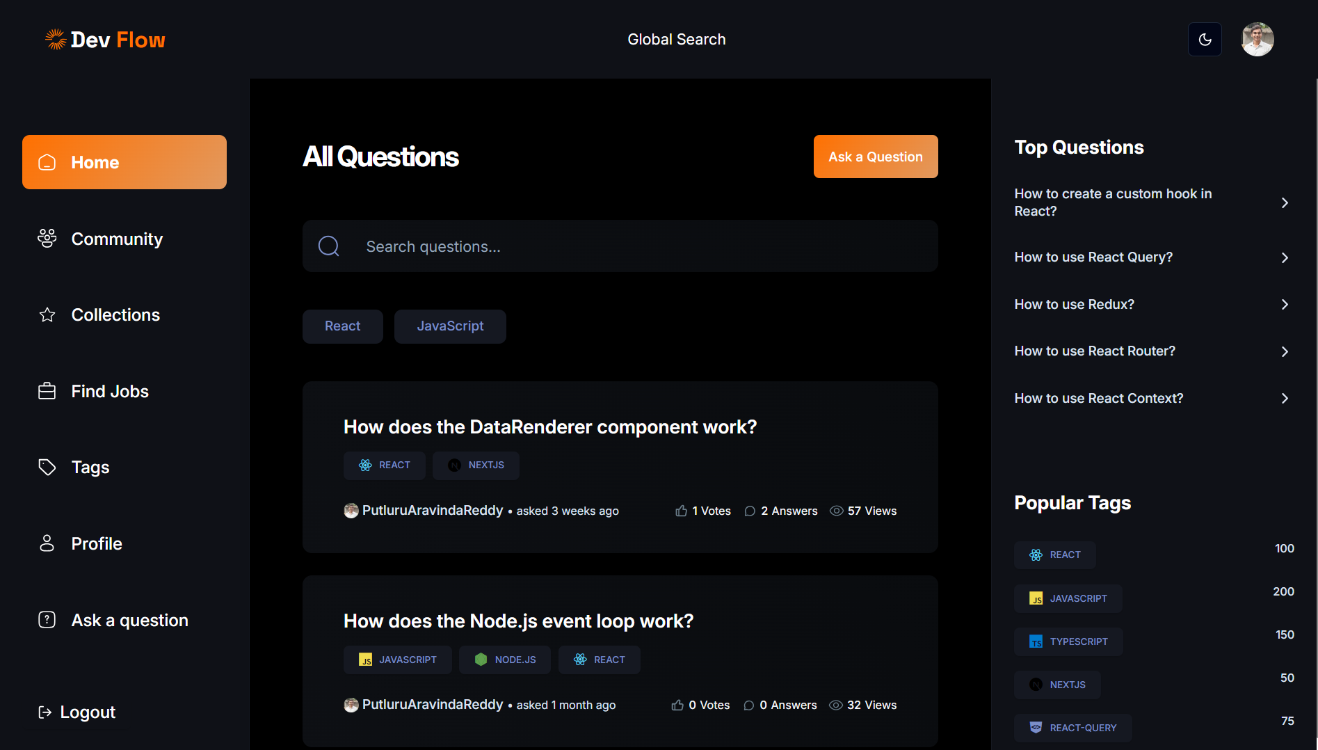 Built a developer-centric Q&A platform using Next.js, enabling users to post questions, answer queries, and engage in discussions. Integrated authentication with NextAuth for secure user access. Implemented upvoting, comment sections, and a tagging system for better content organization. Optimized performance with server-side rendering and MongoDB for efficient data storage.